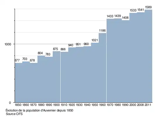 Le graphique suivant résume l'évolution de la population d'Auvernier entre 1850 et 2008[8] :