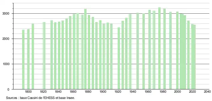 - ↑ Population municipale de référence en vigueur au 1er janvier 2025, millésimée 2022, définie dans les limites territoriales en vigueur au 1er janvier 2024, date de référence statistique : 1er janvier 2022.