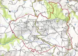 L'occupation des sols de la commune, telle qu'elle ressort de la base de données européenne d’occupation biophysique des sols Corine Land Cover (CLC), est marquée par l'importance des territoires agricoles (79,6 % en 2018), une proportion identique à celle de 1990 (79,6 %). La répartition détaillée en 2018 est la suivante : prairies (52 %), zones agricoles hétérogènes (24,8 %), forêts (11,3 %), zones urbanisées (9,1 %), terres arables (2,8 %)[13]. L'évolution de l’occupation des sols de la commune et de ses infrastructures peut être observée sur les différentes représentations cartographiques du territoire : la carte de Cassini (XVIIIe siècle), la carte d'état-major (1820-1866) et les cartes ou photos aériennes de l'IGN pour la période actuelle (1950 à aujourd'hui)[Carte 1].