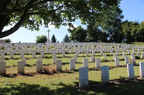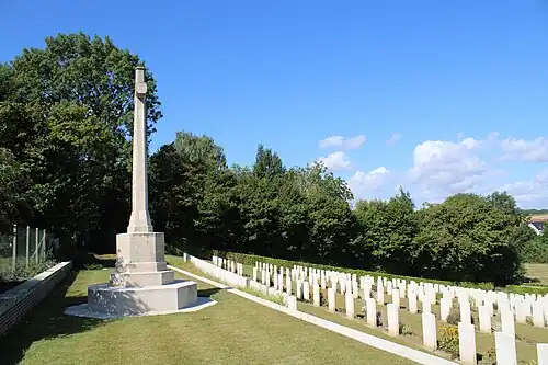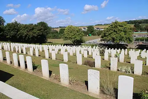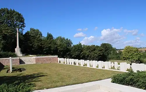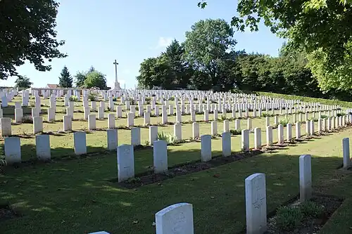 La plupart des victimes inhumées dans ce cimetière sont des soldats blessés, morts dans les hôpitaux de campagne à proximité. C'est la raison pour laquelle il y a peu de soldats inconnus contrairement aux autres cimetières sur la ligne de front.
