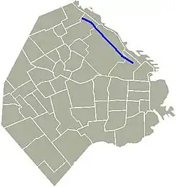 Sur ses côtés se trouvent l'édifice de la Faculté de Droit de l'Université de Buenos Aires, ainsi que le MALBA (ou Museo de Arte Latinoamericano de Buenos Aires).