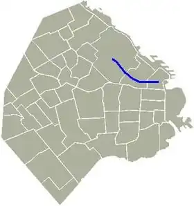 Elle traverse ensuite le quartier de Palermo et longe le côté sud du Jardin botanique. Juste après, elle forme la Plaza Italia, centre du barrio (quartier) de Palermo, où débute le Zoo de Buenos Aires. Après quoi elle se poursuit pour se terminer au niveau de la gare "Ministro Carranza", où elle est prolongée par l' Avenida Cabildo.