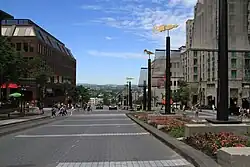 L'avenue est une côte abrupte et traverse un secteur dense- Hôtel Hilton et Centre des congrès de Québec