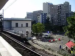 Elle passe sous la ligne B du RER d'Île-de-France[1]. Elle est desservie par la gare de Laplace.