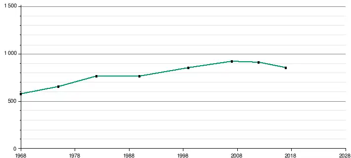 - ↑ Par convention dans Wikipédia, le principe a été retenu de n’afficher dans le tableau des recensements et le graphique, pour les populations légales postérieures à 1999, que les populations correspondant à une enquête exhaustive de recensement pour les communes de moins de 10 000 habitants, et que les populations des années 2006, 2011, 2016, etc. pour les communes de plus de 10 000 habitants, ainsi que la dernière population légale publiée par l’Insee pour l'ensemble des communes.