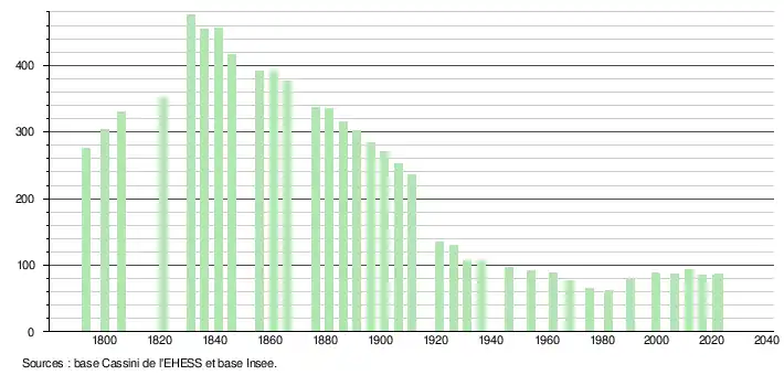 - ↑ Fiches Insee - Populations de référence de la commune pour les années 2006, 2007, 2008, 2009, 2010, 2011, 2012, 2013, 2014, 2015, 2016, 2017, 2018, 2019, 2020, 2021 et 2022.