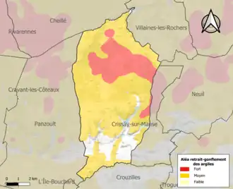 Le retrait-gonflement des sols argileux est susceptible d'engendrer des dommages importants aux bâtiments en cas d’alternance de périodes de sécheresse et de pluie. 86,9 % de la superficie communale est en aléa moyen ou fort (90,2 % au niveau départemental et 48,5 % au niveau national). Sur les 312 bâtiments dénombrés sur la commune en 2019, 169 sont en aléa moyen ou fort, soit 54 %, à comparer aux 91 % au niveau départemental et 54 % au niveau national. Une cartographie de l'exposition du territoire national au retrait gonflement des sols argileux est disponible sur le site du BRGM[23],[24].