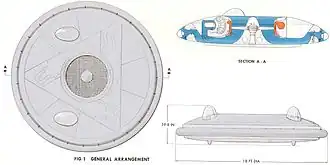 L'Avrocar serial 58-7055 (marquée AV-7055) lors de sa présentation. | |