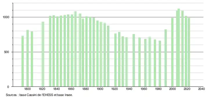- ↑ Fiches Insee - Populations de référence de la commune pour les années 2006, 2007, 2008, 2009, 2010, 2011, 2012, 2013, 2014, 2015, 2016, 2017, 2018, 2019, 2020, 2021 et 2022.