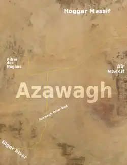 Le bassin de l'Azawagh couvre une superficie de 560 000 km2 comprenant l'Aïr, le Hoggar et l'Adrar des Ifoghas, à la fois en Algérie, au Niger et au Mali.