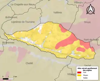 Le retrait-gonflement des sols argileux est susceptible d'engendrer des dommages importants aux bâtiments en cas d’alternance de périodes de sécheresse et de pluie. 88,9 % de la superficie communale est en aléa moyen ou fort (90,2 % au niveau départemental et 48,5 % au niveau national). Sur les 1 558 bâtiments dénombrés sur la commune en 2019, 1157 sont en aléa moyen ou fort, soit 74 %, à comparer aux 91 % au niveau départemental et 54 % au niveau national. Une cartographie de l'exposition du territoire national au retrait gonflement des sols argileux est disponible sur le site du BRGM[28],[29].