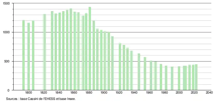 - ↑ Fiches Insee - Populations de référence de la commune pour les années 2006, 2007, 2008, 2009, 2010, 2011, 2012, 2013, 2014, 2015, 2016, 2017, 2018, 2019, 2020, 2021 et 2022.