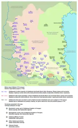 Selon le recensement autrichien de 1715, les Serbes, les Bunjevcis, et les Šokci (Croates) formaient 97,6 % du comitat.
