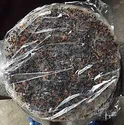 - Mise sur tamis de la galette de riz.