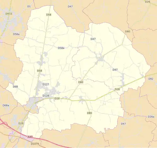 Deux voies sont situées en totalité dans la commune et ne sont que des voies de liaison entre le bourg et les autres axes. Par exemple, la route départementale 127 relie la D 28 et la D 58 alors que la D 128 relie la D 28 à la D 127 sur la place du village.