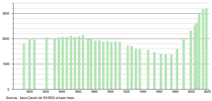 - ↑ Fiches Insee - Populations de référence de la commune pour les années 2006, 2007, 2008, 2009, 2010, 2011, 2012, 2013, 2014, 2015, 2016, 2017 et 2018.