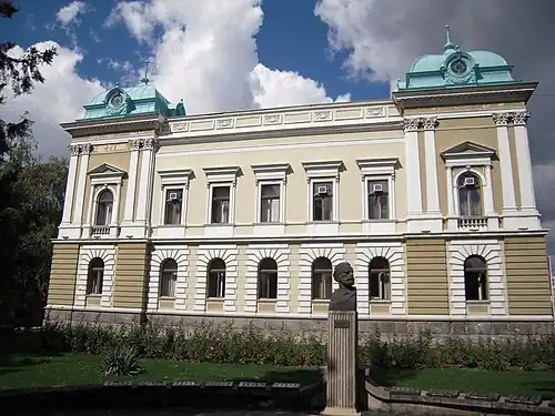 La construction du bâtiment a commencé en 1900 selon un projet de l'architecte Nikola Nestorović ; Otto Goldner a terminé les travaux en 1904. Il est caractéristique du style éclectique, avec une forte influence du néo-classicisme[2],[3].
