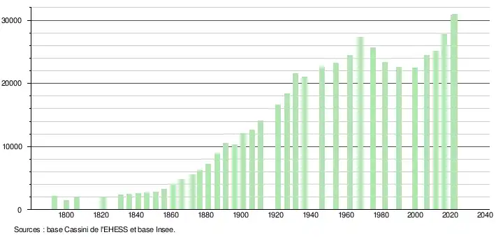 - ↑ Fiches Insee - Populations de référence de la commune pour les années 2006, 2007, 2008, 2009, 2010, 2011, 2012, 2013, 2014, 2015, 2016, 2017, 2018, 2019, 2020, 2021 et 2022.