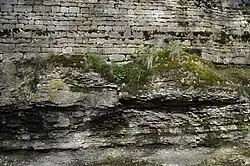 La source est recouverte par des calcaires et marnes du Kimméridgien, ce qui conduit à former à Bèze une « petite cuesta assez visible au sud-est du village », sous les calcaires compacts du Portlandien. Le plafond de la grotte est recouvert de kaolin alors que les parois sont couvertes d’oxyde de manganèse à certains endroits[13]. L'ensemble présente « un pendage léger mais très constant vers le sud, où elle vient s'enfouir sous des lambeaux d'une couverture crétacée puis sous les sédiments tertiaires de la Bresse[12] »[14]. L'établissement du karst de la région doit s'être produit soit à la fin de l'Oligocène, soit pendant le Miocène[15].