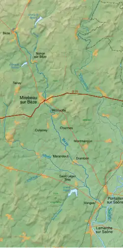 - Principales communes traversées par la Bèze