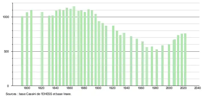 - ↑ Fiches Insee - Populations de référence de la commune pour les années 2006, 2007, 2008, 2009, 2010, 2011, 2012, 2013, 2014, 2015, 2016, 2017, 2018, 2019, 2020, 2021 et 2022.