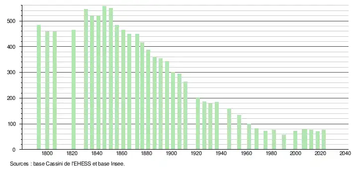 - ↑ Population municipale de référence en vigueur au 1er janvier 2025, millésimée 2022, définie dans les limites territoriales en vigueur au 1er janvier 2024, date de référence statistique : 1er janvier 2022.
