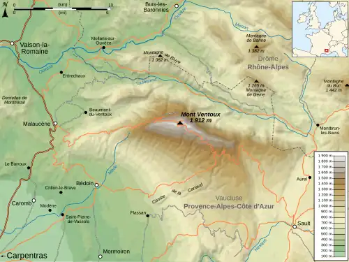 - ↑ « Orthodromie entre Bédoin et Beaumont-du-Ventoux », sur fr.distance.to (consulté le ).