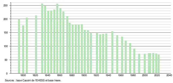 - ↑ Population municipale de référence en vigueur au 1er janvier 2025, millésimée 2022, définie dans les limites territoriales en vigueur au 1er janvier 2024, date de référence statistique : 1er janvier 2022.