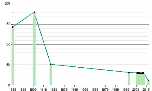 Recensements (*) et estimations de la population[1],[8],[9],[10]. À noter qu'à cause de la pandémie de Covid-19, les principaux habitants du village, les employés de la réserve, étaient rentré chez eux, impactant le résultat du recensement de 2021.