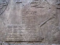 L'illustration du bélier assyrien montre à quel point les moyens d’attaques et de défense étaient devenus sophistiqués dès le IXe siècle av. J.-C. Les défenseurs tentent de mettre le feu au bélier avec des torches et également de glisser une chaîne sous le bélier. Les attaquants tentent de tirer sur la chaîne pour libérer le bélier, alors que les peaux humides susmentionnées permettaient de le protéger contre l'incendie.