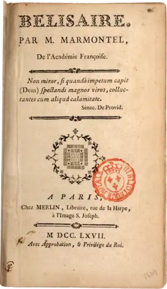 Bélisaire est un roman philosophique français de l'académicien Jean-François Marmontel publié en 1767[1].