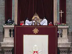 Le rituel de la bénédiction papale Urbi et orbi a été développé au XIIIe siècle sous le règne du pape Grégoire X. Pendant longtemps, elle a été donnée lors d'occasions telles que l'Ascension, les fêtes de saint Pierre et Paul, le Jeudi saint ou encore quand un pape était intronisé Évêque de Rome. Par ailleurs, elle n'était pas le monopole de la basilique Saint-Pierre puisqu'elle était également prononcée aux basiliques de Saint-Jean-de-Latran et à Sainte-Marie-Majeure[1].