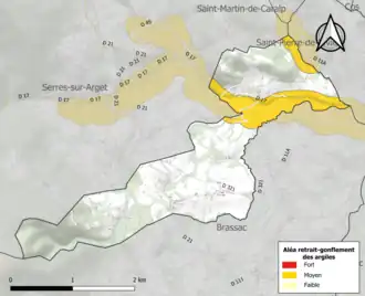 Les mouvements de terrains susceptibles de se produire sur la commune sont soit des chutes de blocs, soit des glissements de terrains, soit des mouvements liés au retrait-gonflement des argiles. Près de 50 % de la superficie du département est concernée par l'aléa retrait-gonflement des argiles, dont la commune de Bénac[38]. L'inventaire national des cavités souterraines permet par ailleurs de localiser celles situées sur la commune[39].