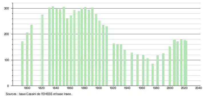 - ↑ Fiches Insee - Populations de référence de la commune pour les années 2006, 2007, 2008, 2009, 2010, 2011, 2012, 2013, 2014, 2015, 2016, 2017, 2018, 2019, 2020, 2021 et 2022.