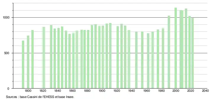 - ↑ Fiches Insee - Populations de référence de la commune pour les années 2006, 2007, 2008, 2009, 2010, 2011, 2012, 2013, 2014, 2015, 2016, 2017, 2018, 2019, 2020, 2021 et 2022.