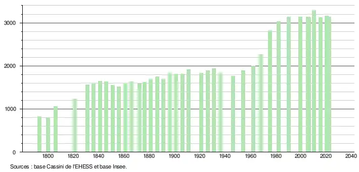 - ↑ Fiches Insee - Populations de référence de la commune pour les années 2006, 2007, 2008, 2009, 2010, 2011, 2012, 2013, 2014, 2015, 2016, 2017, 2018, 2019, 2020, 2021 et 2022.