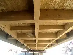 - ↑ En général, les aciers longitudinaux sont calculés comprimés et donc l'espace maximum entre cadres transversaux est limité à quinze fois le diamètre des aciers longitudinaux.