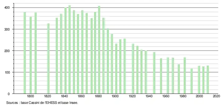 - ↑ Fiches Insee - Populations légales de la commune pour les années 20062007 2008 2009 2010 20112012201320142015 2016 .