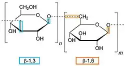 Un β-glucane est un polysaccharide entièrement constitué de D-glucose liés par des liaisons bêta. Les liaisons peuvent être β(1→3), β(1→4) ou β(1→6), les chiffres indiquant les atomes de D-glucose concernés (cf. glucose). Les β-glucanes forment un groupe diversifié de molécules. Les β-glucanes se trouvent dans le son des céréales, les parois cellulaires de la levure de boulanger, de certains champignons, microalgues[1] et bactéries. Bien que la cellulose soit un polysaccharide β(1→4), elle n'est pas habituellement classée comme bêta-glucane parce qu’elle n'a pas exactement les mêmes propriétés physicochimiques que l'on retrouve dans les autres bêta-glucanes[2],[3].