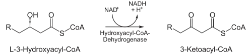 ![]() | 3-hydroxyacyl-CoA déshydrogénase | Oxydation par le NAD+ avec formation de β-cétoacyl-CoA en Cn.