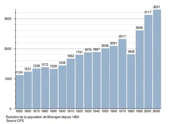 Le graphique suivant résume l'évolution de la population de Bösingen entre 1850 et 2008[6] :