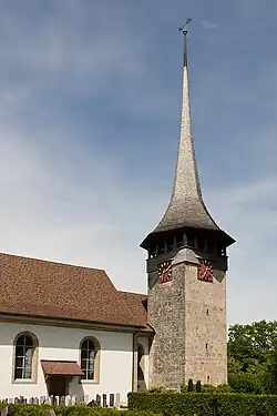 Le clocher de l'église de Bösingen