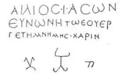 - ↑ Latyshev Vassili Vassilievitch / Василий Васильевич Латышев, « Заметки о кавказских надписях », Известия Императорской Археологической комиссии, 10, 1904, p. 98-105, ici p. 103-105 : « Αἴλιος Ἰάσων Εὐνώνῃ τῷ ε{ο}ὐεργέτῃ μνήμης χάριν » ; « À la mémoire chérie du bienfaiteur Eunônès, Aelius Jason. »