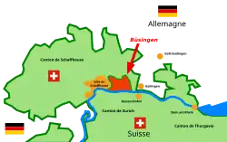 Büsingen am Hochrhein (litt. « Büsingen sur le Rhin supérieur ») est une commune allemande du land de Bade-Wurtemberg, dépendant administrativement de l'arrondissement de Constance et enclavée dans le territoire de la Suisse, dont la plupart des 1 592 habitants sont des retraités suisses originaires de Schaffhouse, ville limitrophe à l'ouest de l'enclave[réf. nécessaire].