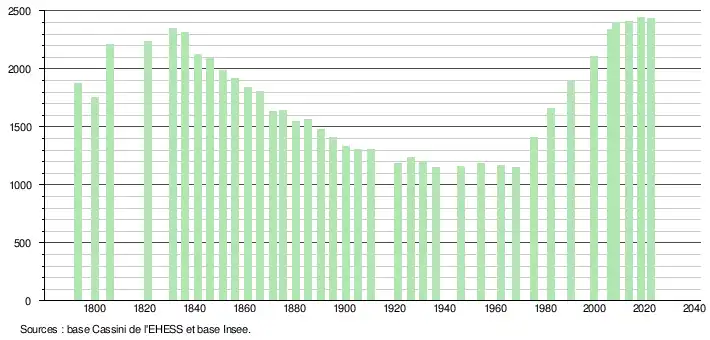 - ↑ Fiches Insee - Populations de référence de la commune pour les années 2006, 2007, 2008, 2009, 2010, 2011, 2012, 2013, 2014, 2015, 2016, 2017, 2018, 2019, 2020, 2021 et 2022.