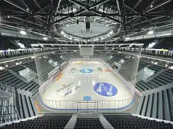 La patinoire est transformée entre septembre 2018 et septembre 2020, entre les différents matchs, après également près de deux ans de planifications. Un total de 8 500 places est projeté, mais elle contient finalement 8 934 places lors de l'inauguration, divisées en 2 540 places debout et 6 394 places assises[18]. Son toit est recouvert de 3 770 m2 de panneaux solaires, dont l'énergie est utilisée par les quatre bâtiments du site[19].