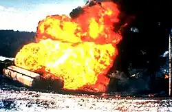 Boule de feu consécutive à une BLEVE sur une citerne de gaz liquéfié.