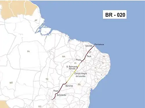 La BR-020 est une route fédérale du Brésil. Son point de départ se situe à Brasília, la capitale fédérale du pays, et elle s'achève à Fortaleza, dans l'État du Ceará. Elle traverse le District fédéral et les États de Goiás, Bahia, du Piauí et du Ceará.