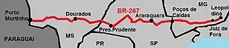 La BR-267 est une importante route fédérale transversale brésilienne qui traverse les états de Minas Gerais, São Paulo et Mato Grosso do Sul. Son itinéraire commence dans la ville de Leopoldina, Minas Gerais et se termine dans la ville de Porto Murtinho, Mato Grosso do Sul, à la frontière avec le Paraguay. Elle a une longueur de 1 921,9 km[1].