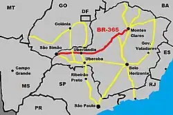 La BR-365 est une importante route fédérale diagonale brésilienne située dans les États de Minas Gerais et Goiás.